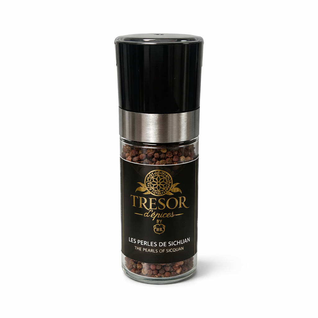 Baies vertes de Sichuan, baies rares de chine aux arômes boisés, citronnés et camphrés mariées aux baies rouges de Sichuan.